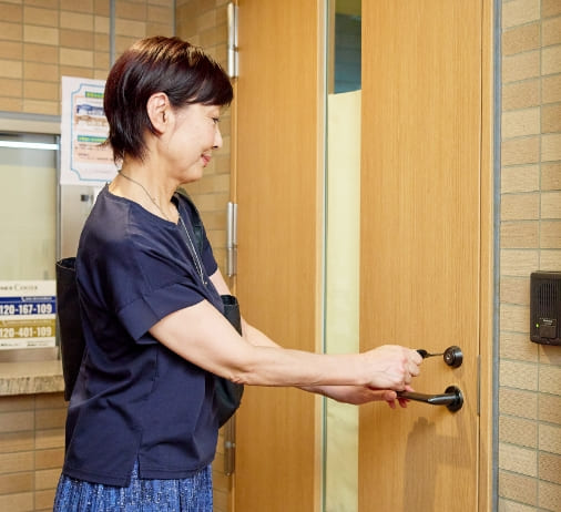 共用部の鍵の戻し忘れがないか、個人情報などの機密情報が保管された棚の施錠漏れがないかなど、一つ一つ指差しで確認し退勤します。