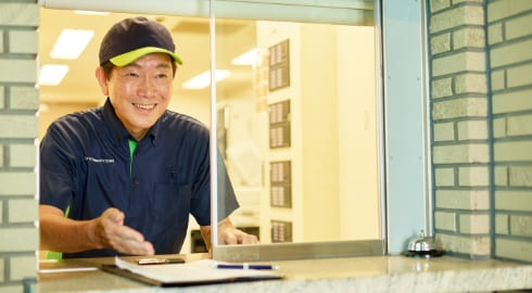 - 居住者様のお問い合わせ、来訪者の入館受付・対応や電話応対等、毎日様々な業務があります。笑顔でご挨拶し、迅速かつ丁寧な対応を意識しましょう。